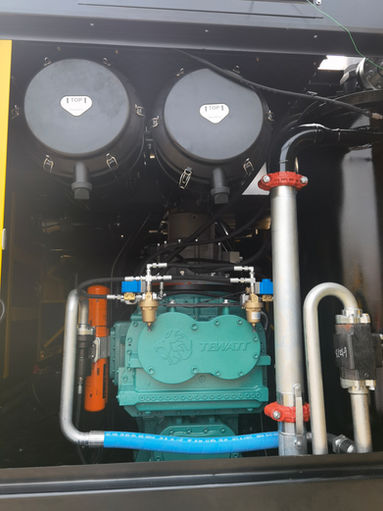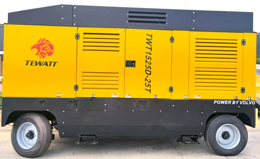 TWT1525D-25T diesel air compressors are equipped with high efficiency TEWATT two stage air-end, powered by CUMMINS engine, Low buy and Maintenance cost, Stable and Durable performance, Fuel saved with global warranty. Tewatt mobile diesel air compressors always meet the harsh environment requirements of high temperature, high cold, high altitude & high dust etc. Suitable for water well drilling, geothermal air drilling, oil & gas exploration, mining & DTH drilling etc.